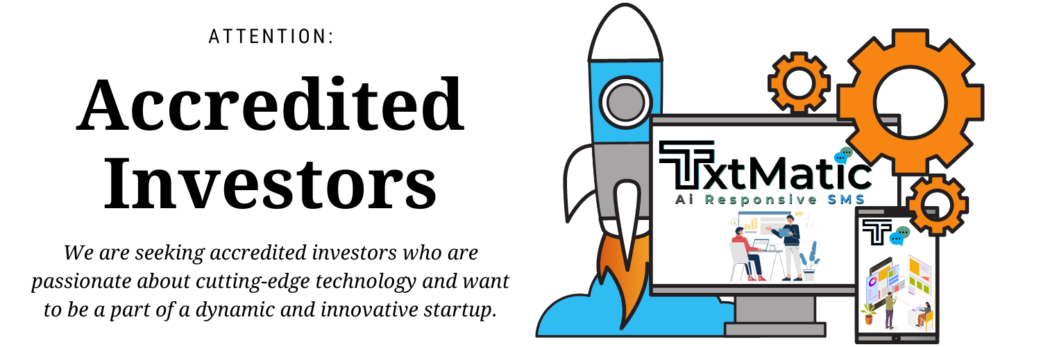 Join us in revolutionizing the SMS/Texting industry! We are seeking accredited investors who are passionate about cutting-edge technology and want to be a part of a dynamic and innovative startup. Our Ai-Text/Text-Ai startup has great potential for growth and success, and we believe that with the right investment, partnership, or connections, we can bring our vision of Responsive-SMS to life. If you are interested in learning more about our AI-SMS startup and the opportunities for investment, partnership, or involvement, please contact us today. Let's work together to shape the future of AI, we look forward to hearing from you!